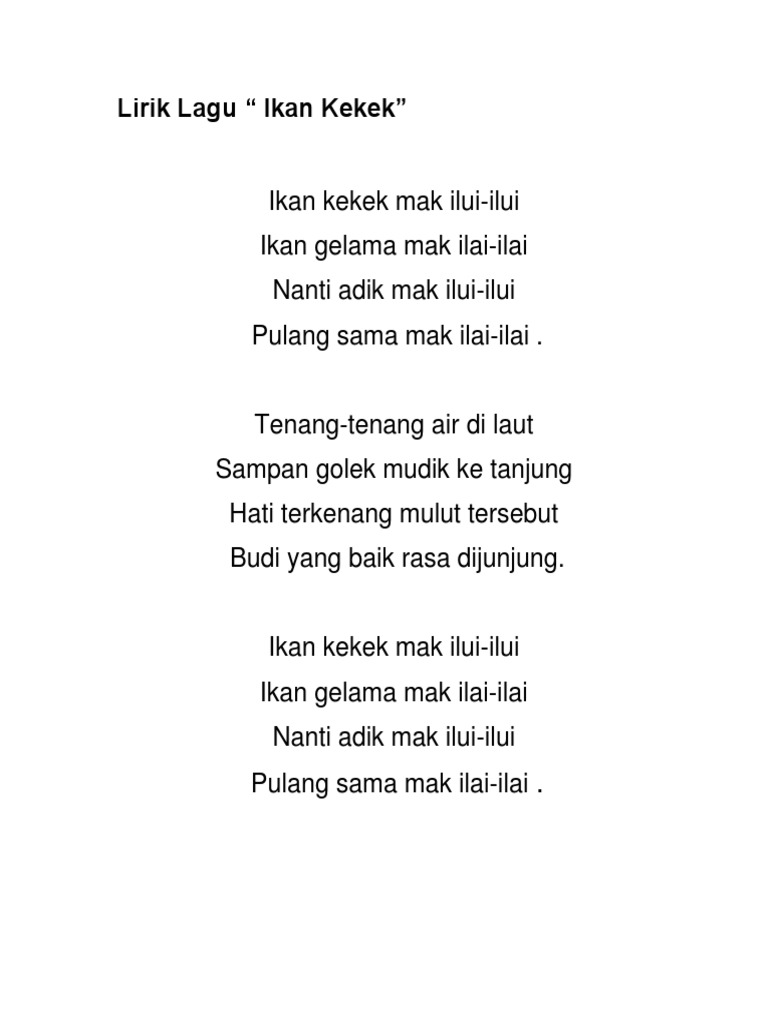 Ejercicio De Latihan Lagu Kanak Kanak Ikan Kekek